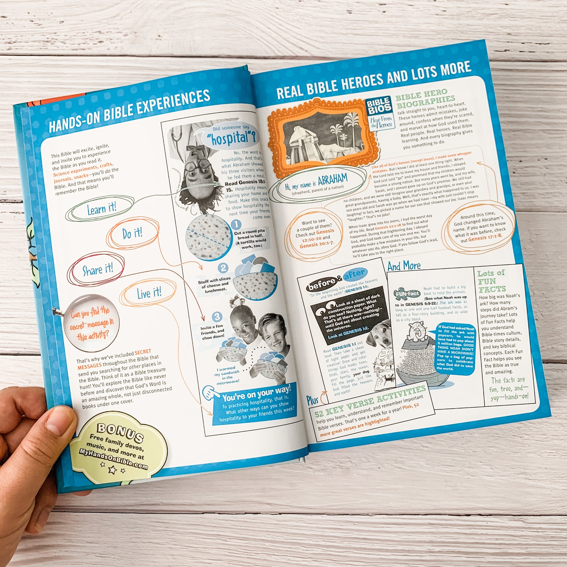 With hundreds of fun, memorable activities, the Hands-On Bible is packed with activities and experiences that invite kids to crawl inside the Scriptures and do God's Word!