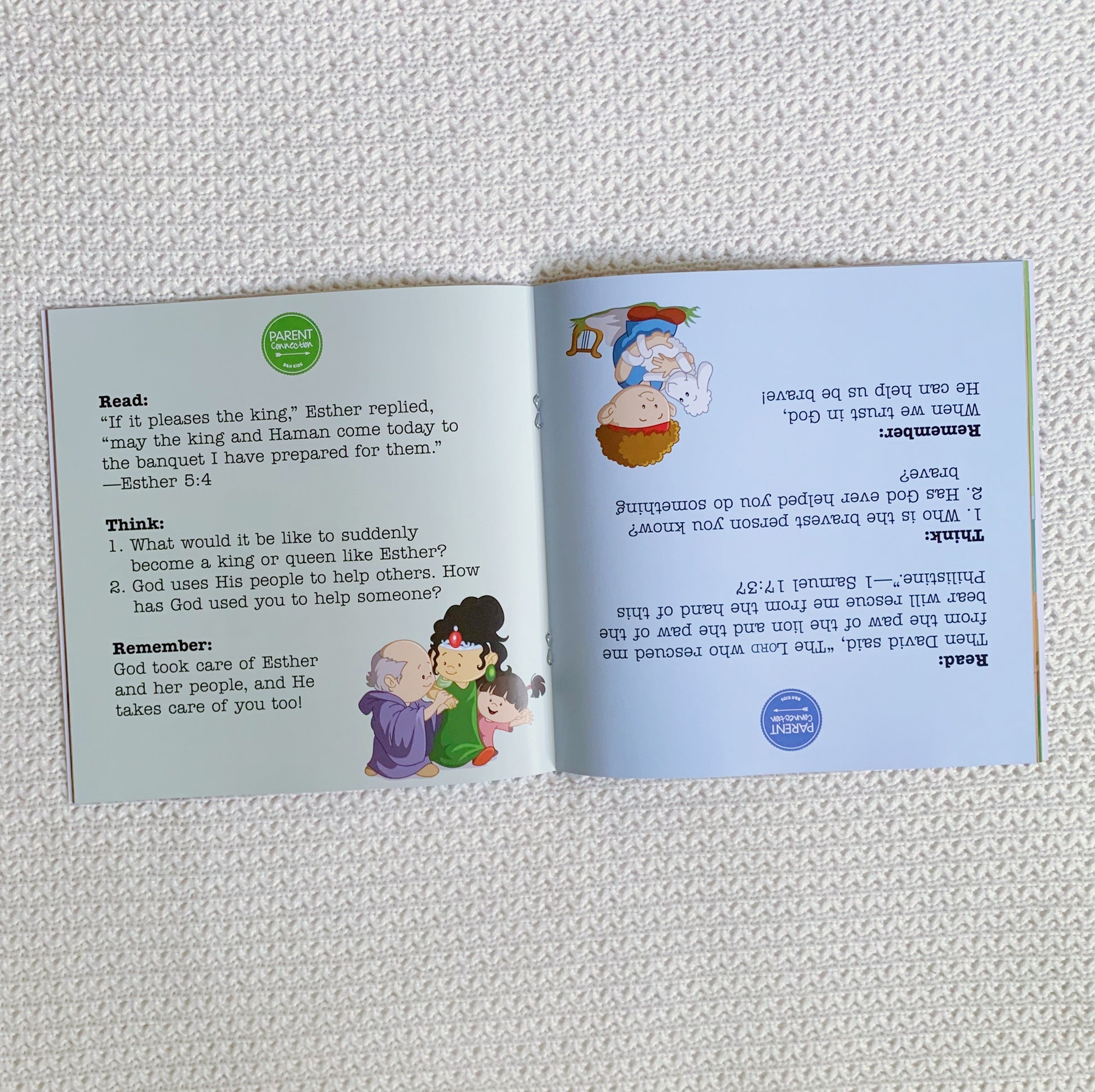 This Little Bible Heroes flip-over book offers two stories of bravery, faithfulness, and kindness - straight from the Bible and perfect for little hero-loving hearts! In these pages, read how young David bravely fought Goliath in God's name. Then flip the book over and learn how Esther had the courage to save her people.