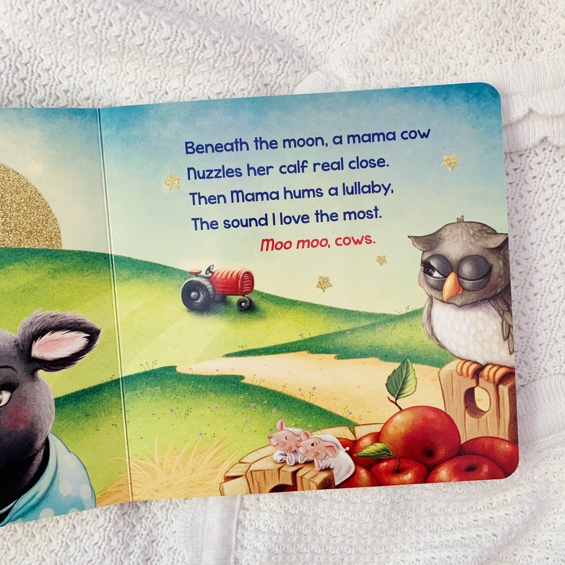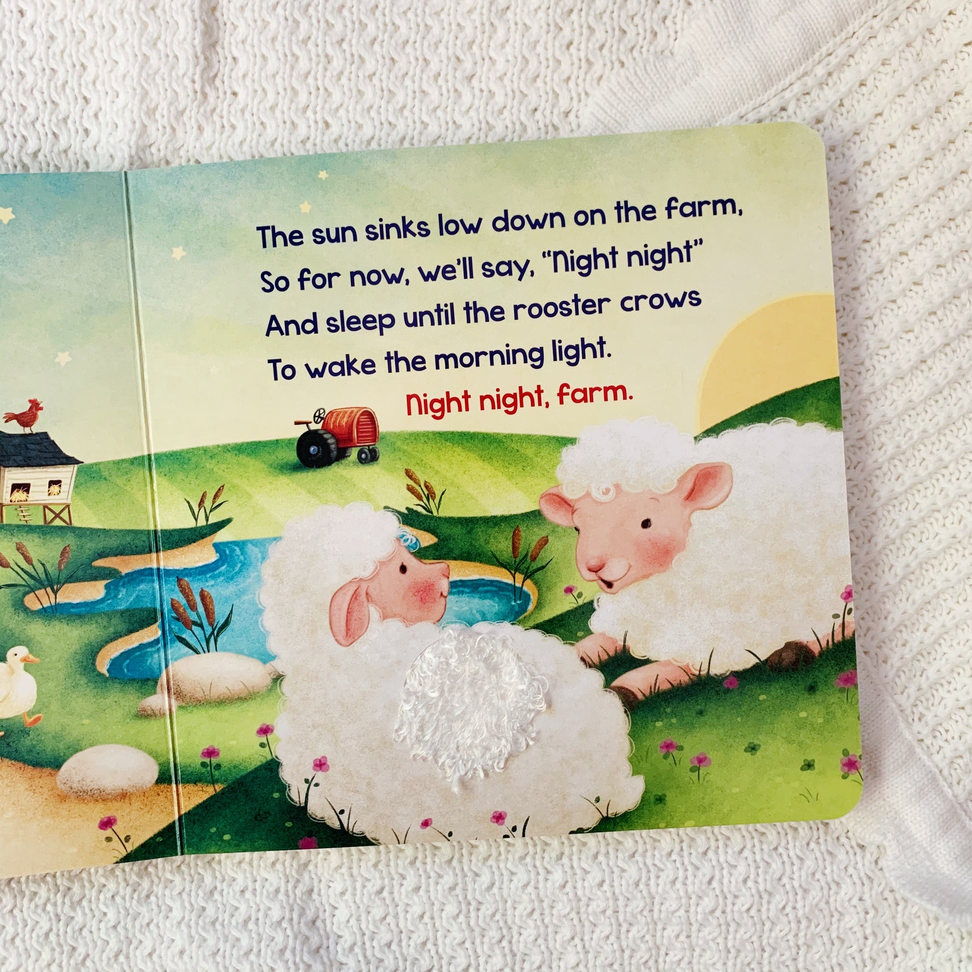 Enjoy this Touch and Feel book with your little one as you say good night! Join the adorable cows, pigs and kittens in their pajamas as they say night night to the each other on the farm, with the sounds that they make. Each page introduces a farm animal and you will also enjoy the charming and colourful illustrations, plus interesting textures to feel! Cuddle up with your little one and enjoy this sweet rhyming board book as you settle down for the night, know that God who made them all loves them too.