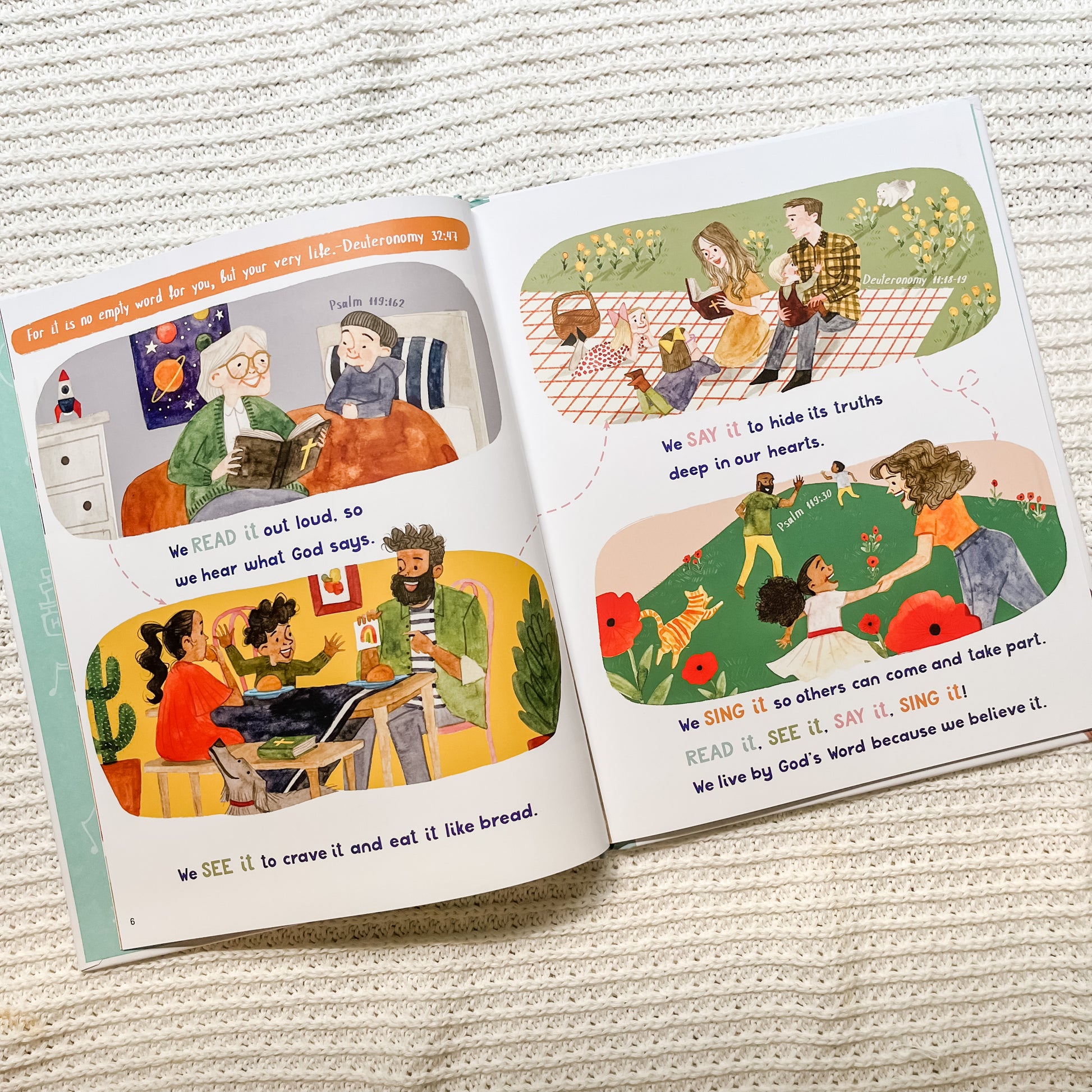 In Hunter Beless’s delightful, rhyming picture book, Read It, See It, Say It, Sing It!, four families grow in their knowledge of and love for the Bible as they- Read, or hear the Bible,
