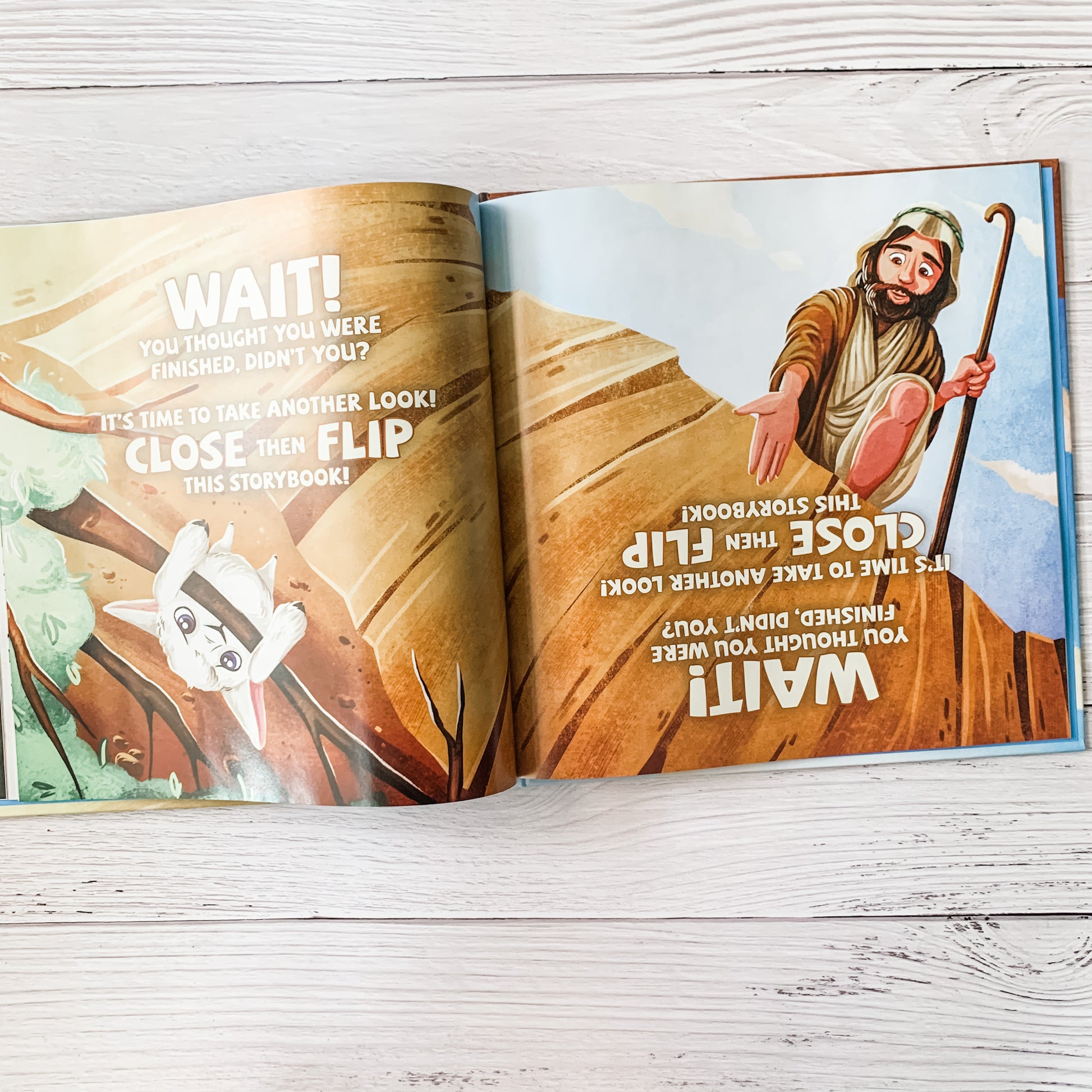 Designed to tell the same story twice from two different, biblical points of view, the book allows the reader to enjoy the story of the lost lamb and then literally flip the book to read the story from the perspective of the shepherd. Utilizing humor, adorable illustrations, and an innovative format, these books provide readers with the added bonus of two books in one.